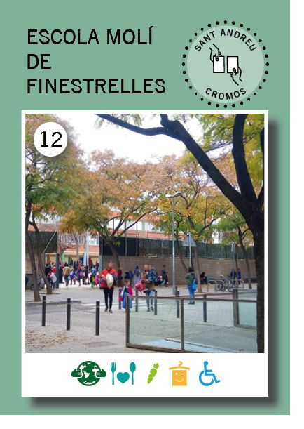 Aquest és el cromo de l'Escola Molí de Finestrelles. És el número 12 de la col·lecció de cromos del districte de Sant Andreu.